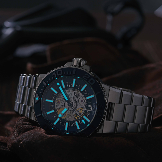 - люминесцентное покрытие Super-Luminova, светящееся в темноте, на стрелках и часовых метках;
