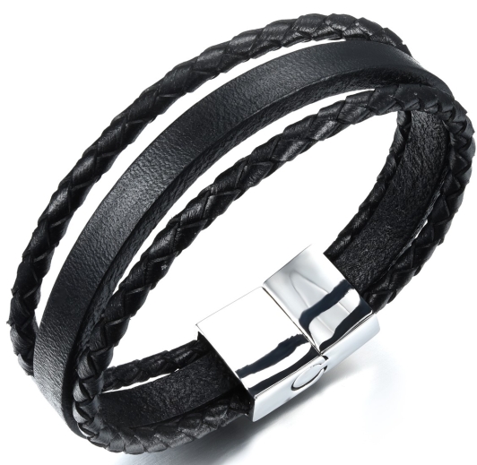Переплетение плетеных и гладких кожаных ремешков создает богатую текстуру и визуальный интерес. Разнообразие фактур придает браслету объем и динамику, делая его по-настоящему притягательным. Высококачественная кожа, используемая в браслете, не только приятна на ощупь, но и со временем приобретает уникальную патину, делая ваш аксессуар еще более индивидуальным. Удобная и надежная магнитная застежка позволяет легко надевать и снимать браслет одной рукой.