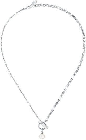 Женское колье Karl Lagerfeld Pearl KLAYR05 - это символ сдержанной роскоши, где холодный блеск серебра гармонично сочетается с нежным сиянием жемчуга.